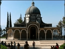 Eerst waren we op bezoek bij locatie aangeduid als de Kerk van de Zaligsprekingen nabij Kapernaüm bij het meer van Tiberias. Deze kerk is ontworpen door een bekende architect Antonio Barluzzi. Er zijn vele locaties, die doorgaan voor de plek waar Jezus zijn Bergrede gehouden zou hebben. Een boeiende beschrijving en speurtocht naar de meest waarschijnlijke plek hiervoor, had ik al gelezen in het boek “A Prayer to our Father – Hebrew origins of the Lord’s prayer” van Nehemia Gordon en Keith Johnson. Volgens hen is de meest waarschijnlijke plek echter de plek die gevormd wordt door twee heuvels, 5 mijl ten Noord-Westen van Tiberias, deze plek is sinds 4 juli 1187 bekend geworden als de Horns of Hattin, waar de kruisvaarders werden verslagen door de moslims. De akoestiek daar, zou heel geschikt zijn geweest voor Jezus bergrede en zijn onderwijs over het Avinu (Onze Vader).