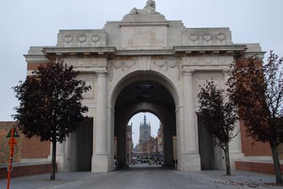 Allereerst kwamen we een kolossaal monument tegen voor de meer dan 100.000 slachtoffers uit W.O. 1, als je Ieper binnenwandelt. In ons geval was dat op 15 augustus, oftewel voor bijgelovige Katholieken de feestdag van Maria ten Hemelopneming, wanneer in principe alles gesloten is. Dit jaar midden in de week op woensdag, heel onwerkelijk dus. Maar dat was deze waanzinnige loopgravenoorlog ook!