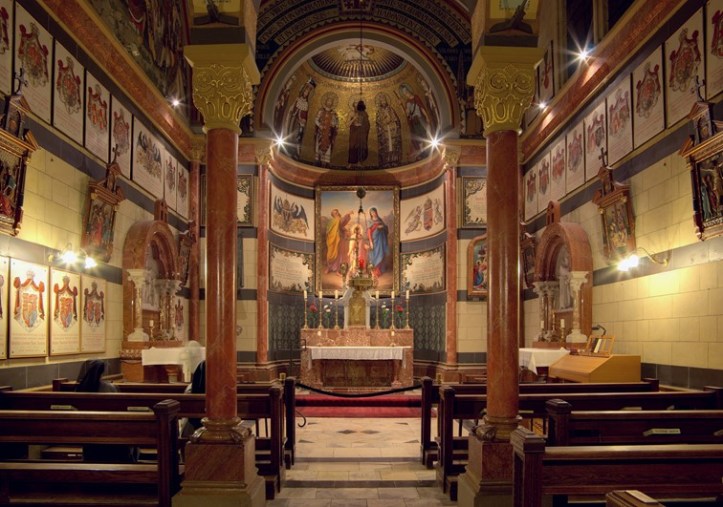 De Orde van de Johannieters vindt zijn oorsprong in 1113, toen de Orde van het Hospitaal officieel erkend werd. Zij worden zo genoemd, omdat deze oudste Johanneskerk van Jeruzalem, gesticht door de verbannen keizerin Aelia Eudocia, deel uitmaakte van hun Hospitaal (in Muristan). De kerk is gewijd aan Johannes de Doper en in de kerk wordt ook een schedel van de Doper als reliek vereerd.6 De huidige kerk is duidelijk bovenop een eerder gebouwd, getuige de crypte beneden. Opvallend aanwezig tussen de iconengalerij allerlei symbolen die getuigen van de mystieke aristocratische bloedlijnmythe, zoals Horus het alziend oog als onderdeel van zonneverering en de dubbelkoppige adelaar.