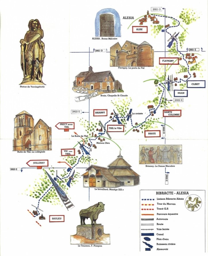 We hebben afgezien van een bezoek aan de abdij van Fontenay en Museoparc Alésia. In het jaar 52 voor Christus is Alésia de plek voor het zes weken durende eindgevecht van de Gallische Oorlog tussen de Galliërs onder leiding van Vercingetorix en het leger van proconsul Julius Caesar. Caesar zette 3 militaire kampen op de heuvel op, inclusief het ziekenhuis en de ziekenboeg. Hij bracht groene anijszaden mee om zijn troepen te behandelen voor spijsverteringsstoornissen. Na de overwinning van Caesar bood hij de heuvel aan Flavinius, een van zijn veteranen, die zijn naam aan de stad gaf. Dankzij opgravingen die Napoleon III liet uitvoeren in 1861 kwam met op het spoor van deze archeologische plek rond Mont Auxois, waar nu een openluchtpark van Europees formaat te bezoeken is.